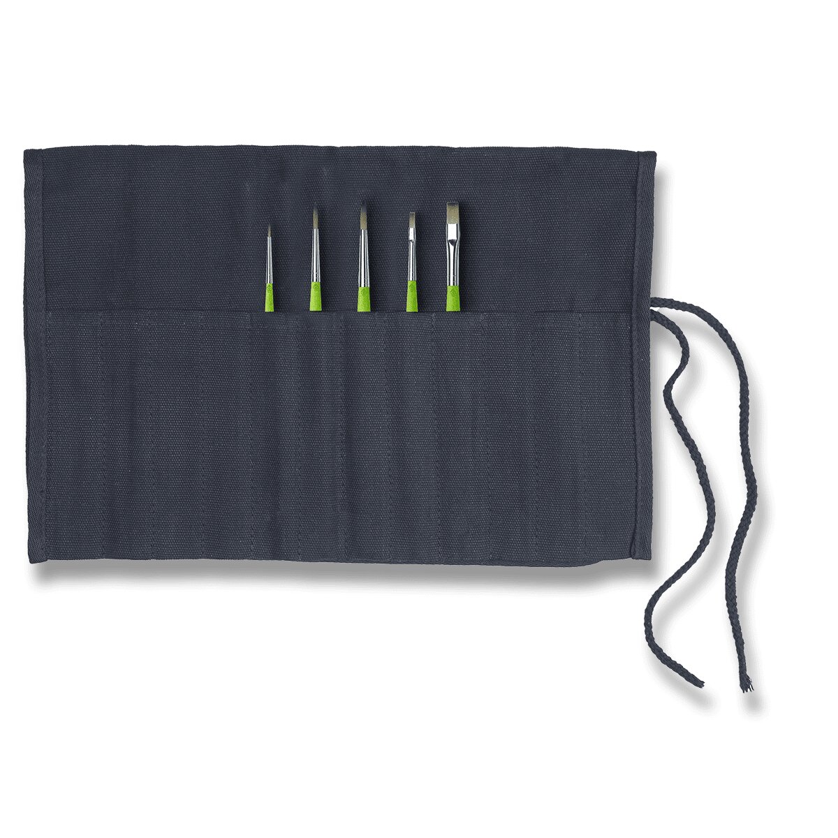 Sada pěti oblíbených syntetických štětců v praktickém černém bavlněném pouzdře, ve kterém lze štětce bezpečně přepravovat, s dostatkem prostoru pro další malířské nářadí. Univerzální štětce vhodné k tvoření a do školy, pro všechny typy barev. Ideální na cesty. číst celé