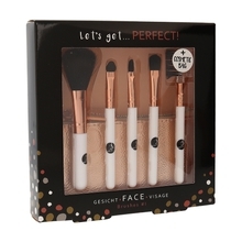 Sada kosmetických štětců **2K Let´s Get Perfect!**. Štětce 2K Let´s Get Perfect! pro snadné a precizní líčení. **Složení kazety**: Štětec na pudr 1 ks Štětec na rty 1 ks Aplikátor na oční stíny 1 ks Štětec na oční stíny 1 ks Štětec na obočí 1 ks Taška