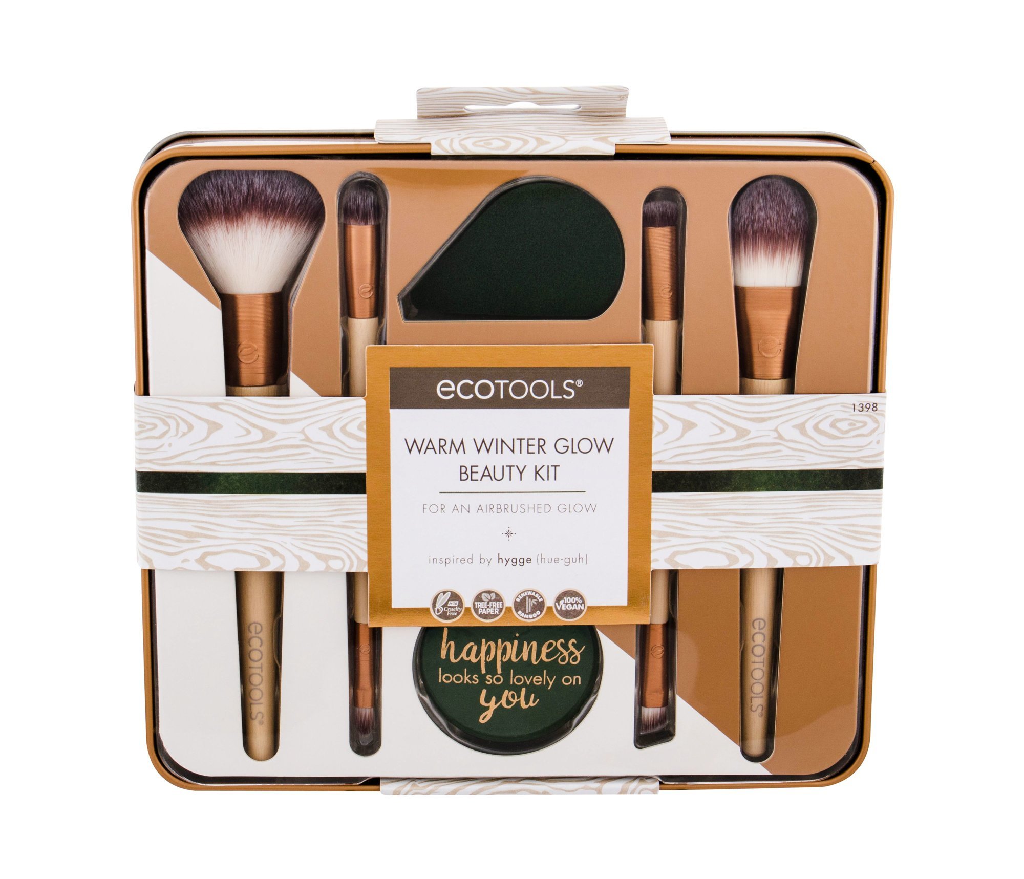 Sada kosmetických štětců **EcoTools Warm Winter Glow Beauty Kit.** Sada kosmetických štětců, inspirovaná životním stylem Hygge, vytvoří nádherný zdravý zimní look. Produkty v sadě nebyly testovány na zvířatech. Jsou 100% veganské a na rukojeti bylo použito pouze bambusové dřevo. Se sadou Warm Winter Glow Beauty Kit bude Vaše pleť dokonalá. **Složení kazety:** plochý štětec na make-up **EcoTools Classic Foundation 1 ks.** Kosmetický štětec plochého tvaru se syntetickými vlákny a bambusovou rukojetí umožní snadnou aplikaci tekutého make-upu. kulatý štětec na pudr nebo tvářenku **EcoTools Round Powder 1 ks.** Kulatý kosmetický štětec s hustými delšími syntetickými vlákny slouží k aplikaci pudru nebo tvářenky. oboustranný štětec na korektor a rozjasňovač**EcoTools Airbrush/Detail 1 ks.** Kosmetický štětec s dvojitým zakončením slouží k aplikaci tekutých i tuhých korektorů a k aplikaci rozjaňovače v detailních částech obličeje jako je oční koutek, obočí, nosoretní rýha a nos. oboustranný kosmetický štětec pro úpravu obočí a na oční stíny**EcoTools Smudge/Line 1 ks.** Oboustranný kosmetický štětec slouží k aplikaci očních linek a k definování tvaru obočí na straně jedné a na straně druhé umožňuje snadné nanesení a blending očních stínů. houbička na make-up **EcoTools Tri-Fecting Wedge 1 ks** Houbička usnadní rozmazat make-up a vytvořit tak přirozený vzhled s plným krytím. **zrcátko 1 ks** **plechová krabička 1 ks**