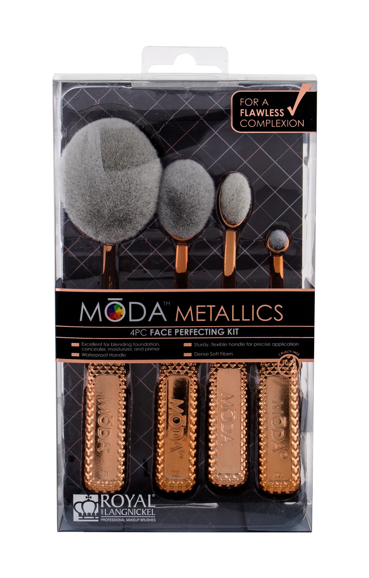 Royal & Langnickel Moda Metallics štětec na make-up 1 ks + štětec na tvářenku 1 ks + štětec na konturování 1 ks + štětec na korektor 1 ks