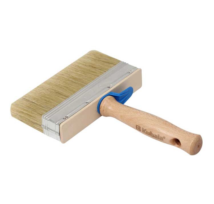Štětka na tapety 140mm - ergonomická, buková, přírodní rukojeť - směs 50/50, přírodní štětina 90% tops a umělé vlákno X-shape- zinkové kování- háček na pověšení na kbelík