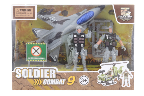 Vojenská sada. Balení obsahuje dva vojáčky, stíhačku a další doplňky. Rozměr balení 25,5 x 17,5 x 9 cm. Věk 3+ číst celé