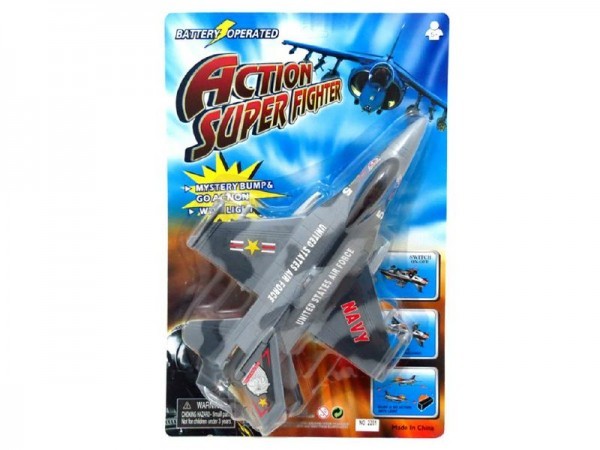 Stíhačka vojenská plast 26cm na baterie asst 2 barvy na kartě