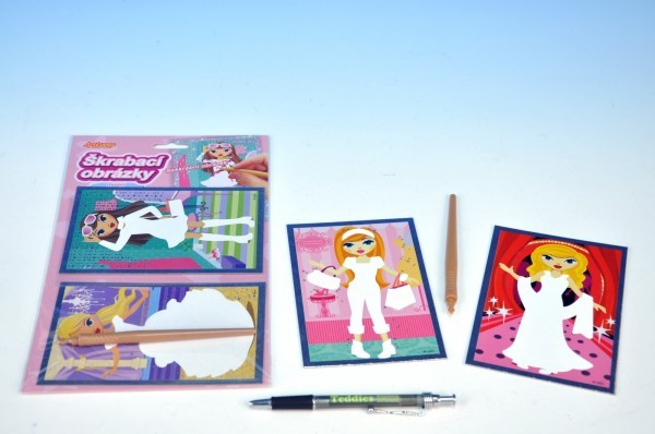 Škrábací obrázek modní návrhářka 10x15cm 2 obrázky na kartě