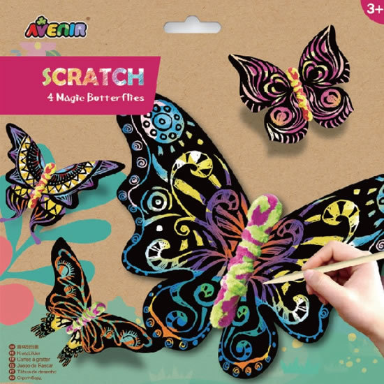 Vyškrábejte si své vlastní motýly! Zní to zvláštně, já vím, ale opravdu jde o výtvarnou techniku, která děti baví. Vzhledem k tomu, že vás čeká tvoření čtyř krásných motýlků, hodí se určitě především pro děvčata. Vytvořené motýlky pak mohou použít jak krásnou dekoraci, vystavit si je někde v pokojíčku. Antistresový výrobek pro děti :-). I pro ty, které nejsou nijak výtvarně zručné, protože to opravdu není nic těžkého a výsledek stojí zato.