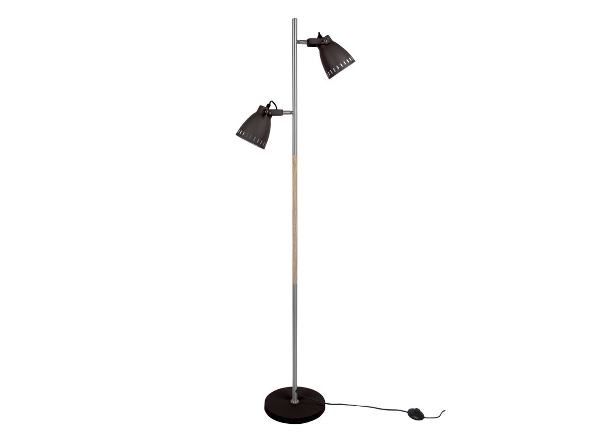 Stojací lampa se 2 žárovky v černé barvě. Její rám je vyrobený z niklu a dřeva. Šňůra je vybavena spínačem.