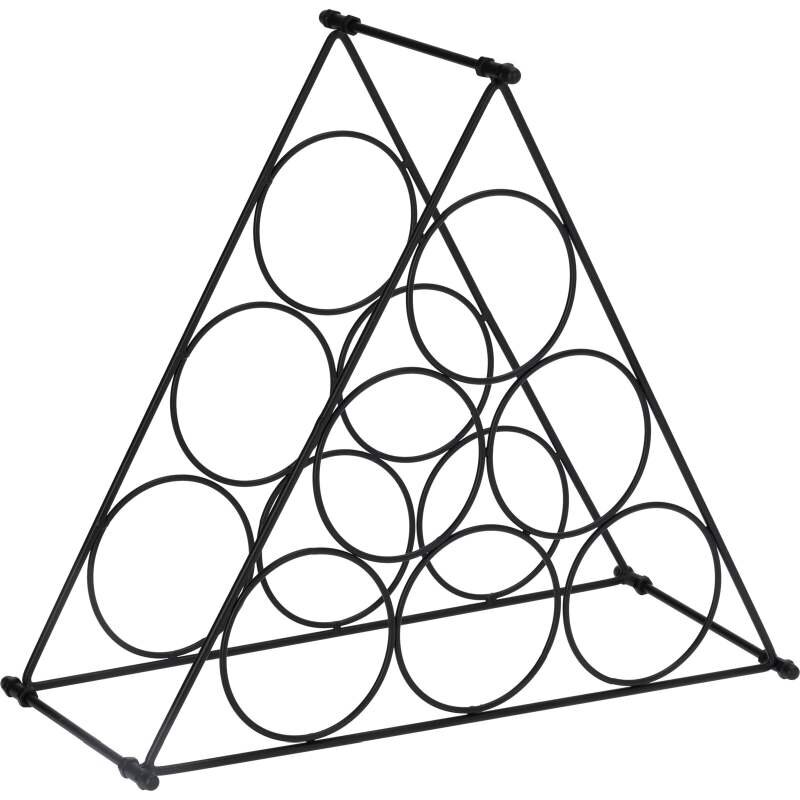 Stylový kovový regál na víno s trojúhelníkovým tvarem a kapacitou pro 6 lahví. Ideální pro uskladnění vína a jeho elegantní vystavení.