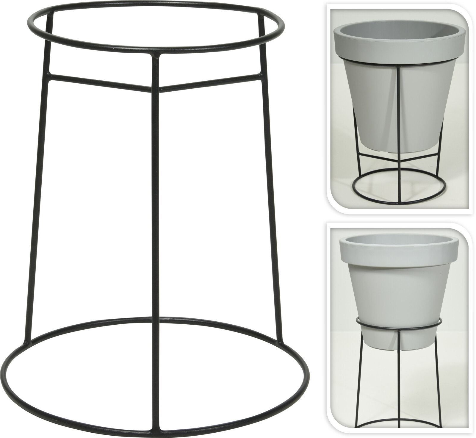 Metalowy stojak na doniczkę. Przedstawiamy idealny dodatek do Twojego domu lub biura - nasz piękny stojak nadoniczki wykonany z metalu w czarnym kolorze. Ten stylowy i nowoczesny element jest idealny zarówno do użytku wewnętrznego, jak i zewnętrznego i został zaprojektowany tak, aby pasował do każdego wystroju, w każdym miejscu. Dzięki eleganckiemu, czarnemu wykończeniu, będzie wyglądać niesamowicie w każdej przestrzeni życiowej lub ogrodowej. Ponadto, nie tylko ten element wygląda oszałamiająco, ale jest również niezwykle trwały i mocny, wykonany z wysokiej jakości materiałów. wymiary:45x53cm 36cm średnica mniejszego otworu, 45cm średnica większego otworu