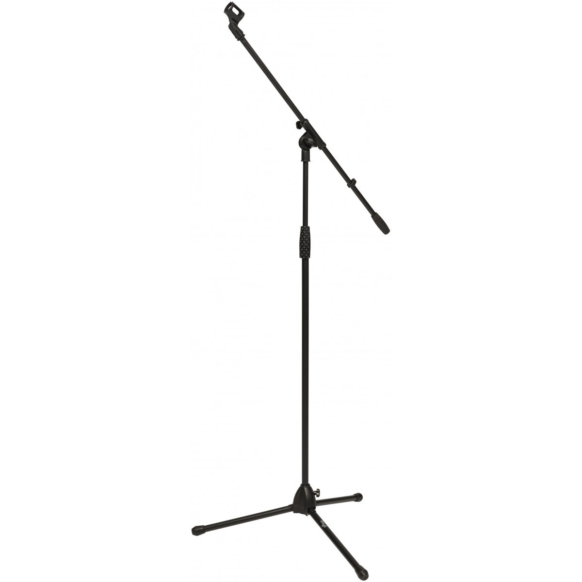 Mikrofonní stojan řady Q. Silná kovová konstrukce s nylonovými spojovacími částmi. Lze složit naplocho pro snadnou přepravu. Stabilní nylonová základna s kovovou výztuhou. Snadné nastavení výšky a úhlu. Práškový lak odolný proti poškrábání. Spony na organizaci kabelů. Ergonomicky tvarované rukojeti s texturou. Obsahuje univerzální mikrofonní klip. Univerzální EU+US závit držáku mikrofonu. Výška připojení výložníku: 90-140 cm. Průměr trubky: 15 mm a 20 mm. Délka výložníku: 74 cm, průměr 15 mm. Průměr nohy: 19 mm. Hmotnost: 1,65 kg. Černá barva