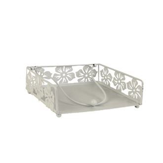 Velice pěkný kovový stojan na ubrousky. Rozměry : 18 x 18 cm, výška 6,5 cm. Barva : bílá. Materiál : kov.