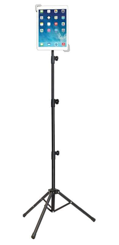 Univerzální teleskopický stojan pro tablety a obrazovky o velikosti 9,5"-14,5" (24-37cm).Šířka otvoru držáku 13,5-22cm, nastavitelná výška stojanu 0,55-1,45m, otáčení o 360°, výklopný. Balení obsahuje úložnou sáček a skládá se ze 3 pevných nástavců, 1 stativu a 1 nastavitelné silikonové svorky, aby nedošlo k poškození obrazovky ak zabránění jejímu posouvání.