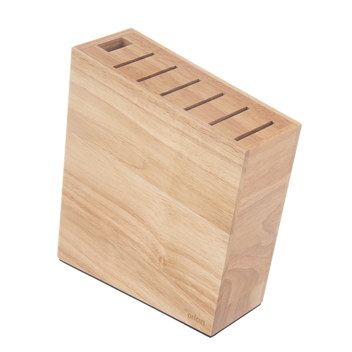 Stojan na nože je velmi elegantní a má nadčasový design. Nože máte po ruce, netupí se nikde v zásuvkách. Vypadá velmi stylově, uplatní se jak v moderní, tak klasické kuchyni. Uloží 6 nožů a ocílku/nůžky. Pěnová podložka zabraňuje posunování po podložce a poškrábání povrchu nábytku. Materiál: gumovníkové dřevo, EVA. Rozměry: stojan 23,5x7x23 cm. Stojan není vhodný do myčky.