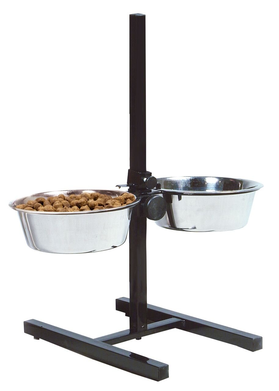 Praktický stojan včetně nerezových misek, který si můžete libovolně nastavit podle velikosti vašeho zvířete. Váš domácí mazlíček zajisté ocení, že se u krmení nemusí hrbit a krčit.