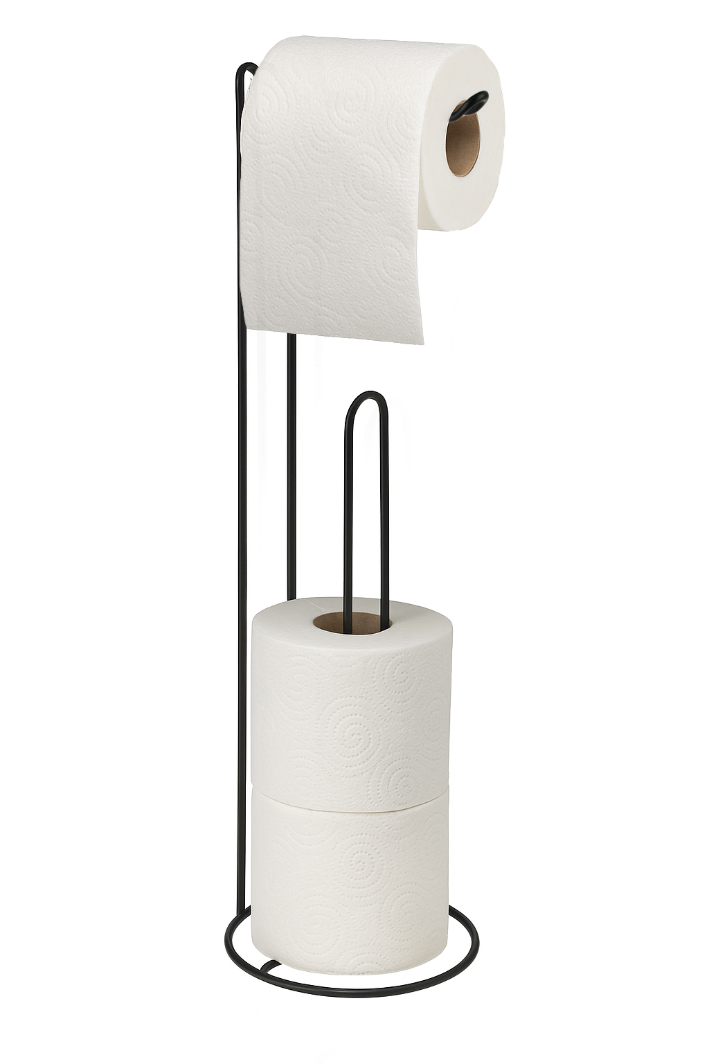 Stojak na papier toaletowy DEA BLACK to elegancki i praktyczny element wyposażenia łazienki, łączący nowoczesny design z funkcjonalnością. Wykonany z metalu w matowym, czarnym kolorze, prezentuje się stylowo i solidnie, idealnie wpisując się w aranżacje o charakterze minimalistycznym, loftowym czy industrialnym. Jego wymiary 15 15 54 cm zapewniają stabilność oraz odpowiednią pojemność . umożliwia wygodne przechowywanie kilku zapasowych rolek papieru, jednocześnie zachowując estetyczny wygląd. Smukła, pionowa forma sprawia, że stojak nie zajmuje dużo miejsca, co czyni go doskonałym rozwiązaniem nawet do niewielkich łazienek. To funkcjonalny dodatek, który podnosi komfort codziennego użytkowania i nadaje wnętrzu nowoczesnego charakteru.