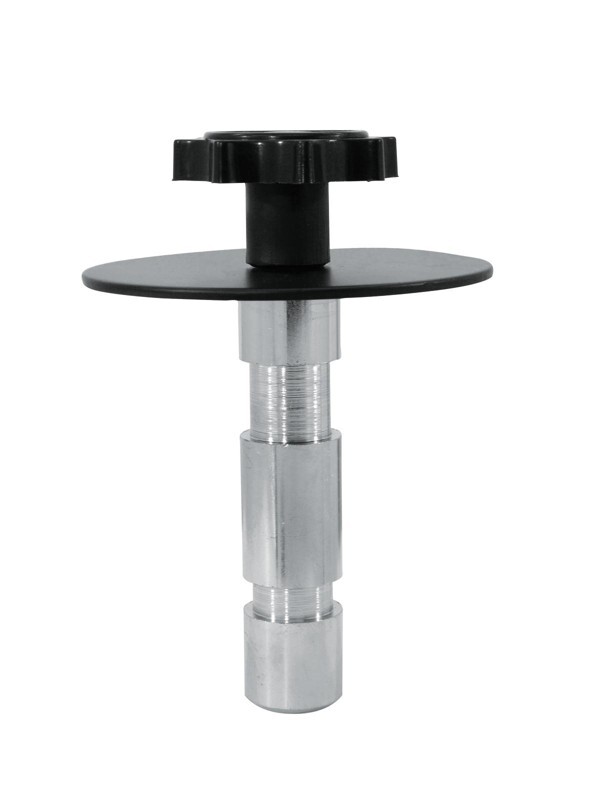 TV Pin (čep 28 mm) s montážní deskou pro instalaci světelných efektů a držáků reproduktorů a jiných zařízení. Šroub s plastovou hlavicí a závitem M12. Průměr montážní desky 110 mm, maximální zatížení 50 kg.
