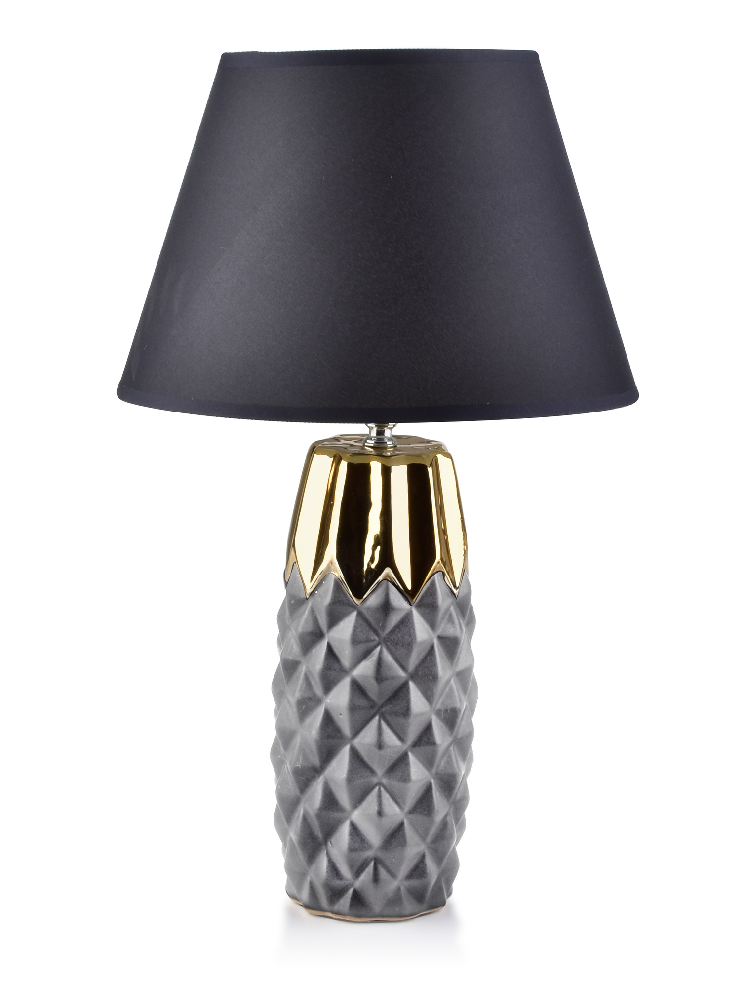 Lampa z serii LARA marki MONDEX składa się ceramicznej podstawy i klosza z materiału. Prosta forma i połączenie złota z matową czernią dodają lampie szyku.Świetnie sprawdzi się w każdym wnętrzu. W połączeniu z czarnym kloszem idealnie wpasowuje się w obecne trendy. lampa wymiary : wysokość z kloszem 52cm szerokość 12cm klosz wymiary:wysokość 20cm śr.górna 18cm śr. dolna 30cm długość kabla 125cm gwint: e27 żarówka max 40W brown box