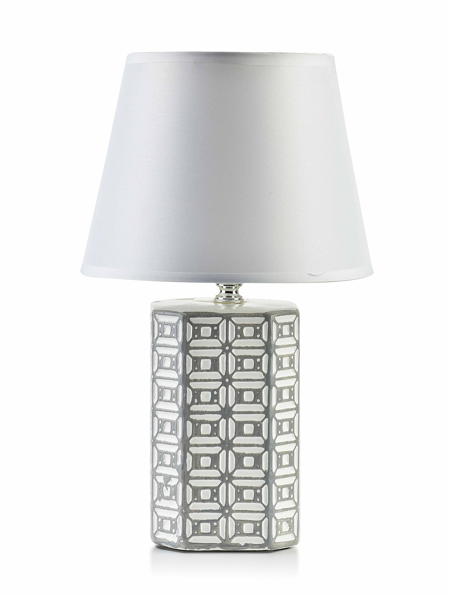 Lampa z serii LETI NATURAL marki MONDEX składa się ceramicznej podstawy i kloszamateriału. Podstawa w kolorze szaro-białym w geometryczne wzory nada niezwykłego klimatu wnętrzu. Tłoczenie dodaje niezwykły efekt wielowymiarowości lampy. W połączeniu z kloszem idealnie wpasowuje się w obecne trendy. Wymiary: 10x10xh32cm Podstawa: 10x10xh23cm z gwintemKlosz: 14x20xh16cm Żarówka, gwint: E14Długość kabla: 120cm biały kabel waga: 634g/672kg z opakowaniem podstawa zapakowana w brown box: 12,5x11,5xh23cmLampa stołowa ceramiczna to jeden z najpopularniejszych rodzajów lamp, wykorzystywanych w wielu domach i biurach na całym świecie. Swoją popularność zawdzięcza zarówno praktyczności, jak i estetyce. W dzisiejszych czasach dostępnych jest wiele różnych modeli i wzorów, dzięki czemu każdy może znaleźć coś odpowiedniego do swojego wnętrza. Lampy stołowe ceramiczne mają długą historię, sięgającą aż do starożytnych Chin. W tamtych czasach wykorzystywano je głównie jako źródło światła w świątyniach i pałacach cesarskich. Jednak dopiero w XIX wieku, dzięki rozwojowi przemysłu ceramicznego, stały się popularne w Europie. Wówczas zaczęto wykorzystywać je również do oświetlenia domów i biur.