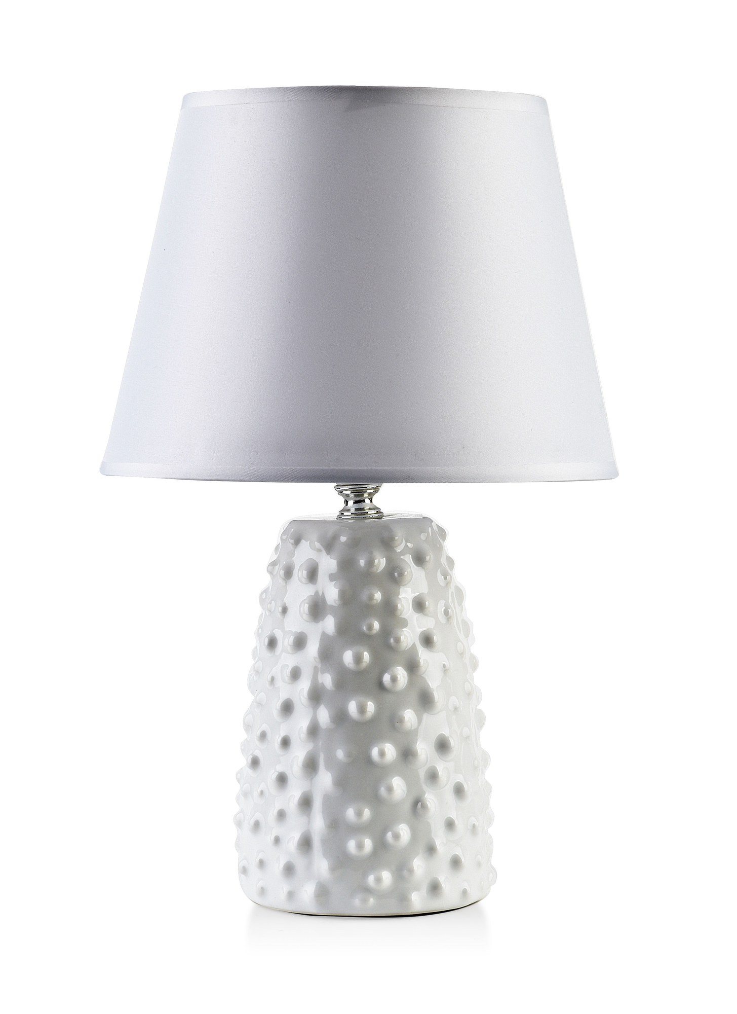 Lampa z serii LETI WHITE marki MONDEX składa się ceramicznej podstawy i klosza z materiału. Tłoczona podstawa w bąbelki w kolorze białym sprawia, że nada ona niezwykłego klimatu wnętrzu. Tłoczenie dodaje niezwykły efekt wielowymiarowości lampy. W połączeniu z białym kloszem idealnie wpasowuje się w obecne trendy. Wymiary: 11x7xh35cm Podstawa: 11x7xh24cm z gwintem Klosz:16x22,5xh16,5cm Żarówka, gwint: E14, max60W Długość kabla:120cm (kolor biały) waga:832g/878g z opakowaniem podstawa zapakowana jednostkowo w brązowy karton 11,5x11,5xh24,5cm klosz osobnoLampa stołowa ceramiczna to jeden z najpopularniejszych rodzajów lamp, wykorzystywanych w wielu domach i biurach na całym świecie. Swoją popularność zawdzięcza zarówno praktyczności, jak i estetyce. W dzisiejszych czasach dostępnych jest wiele różnych modeli i wzorów, dzięki czemu każdy może znaleźć coś odpowiedniego do swojego wnętrza. Lampy stołowe ceramiczne mają długą historię, sięgającą aż do starożytnych Chin. W tamtych czasach wykorzystywano je głównie jako źródło światła w świątyniach i pałacach cesarskich. Jednak dopiero w XIX wieku, dzięki rozwojowi przemysłu ceramicznego, stały się popularne w Europie. Wówczas zaczęto wykorzystywać je również do oświetlenia domów i biur.