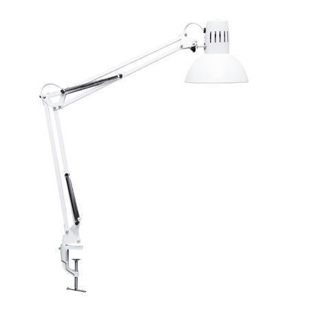 Profesionální stolní lampa v osvědčeném provedení. Vhodná pro studenty i workoholiky. Vlastnosti: stolní; optimální využití světla; vysoká kvalita světla; nulová spotřeba energie při vypnutí; tlačítko on/off; kovová hlava svítidla je o 360° otočná a o 130° sklopná; robustní upínací svorka; vhodné pro žárovky tříd A+ až B Žárovka: pro úsporné žárovky E27 (10,5 x 6); nejsou součástí balení Barva: bílá Délka kabelu: 1,75 m Rozměr: 51 cm (výška); 35 cm a 35 cm (délka dolní a horní paže); 17 cm (průměr hlavy svítidla); 5,5 cm (upínací šířka svorky) Hmotnost: 0,7 kg