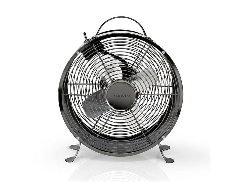 Ventilátor NEDIS FNCL10GM20P Tento retro Nedis stolní ventilátor je vybavený pevnou celokovovou konstrukcí s protiskluzovými nožičkami, díky kterým bude bezpečně stát na svém místě na stole. Disponuje dvěma rychlostmi, které zajišťují svěží vánek i během těch nejteplejších dní, a to jak doma, tak v kanceláři. Pokud se potřebujete přemístit, můžete si ventilátor díky držadlu navrchu vzít s sebou. Pomocí kabelu dlouhého 1,5 metru můžete ventilátor umístit přesně tam, kde ho potřebujete nejvíc.