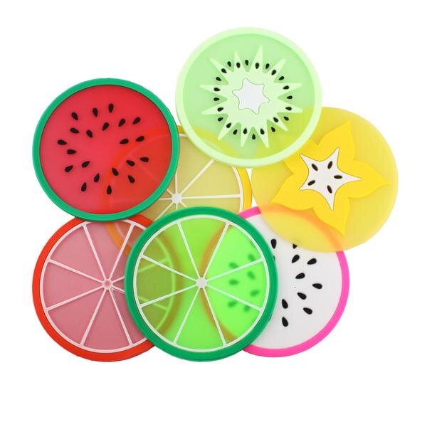 PODLOŽKA POD HRNEK, 7XVZOR OVOCE 8,5X8,5CM PVC