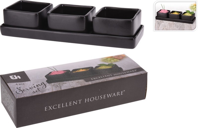 Servírovací misky s podnosem sada 4 ks černá