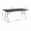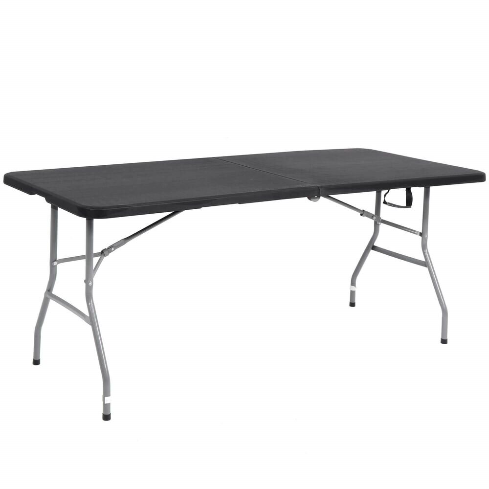 Jídelní stůl s odolnou deskou s černým hladkým povrchem. Až pro 6 osob, nosnost 150 kg. Skládací provedení do velikosti kufru. Bezpečnostní zámek pro složení stolu. Pohodlná rukojeť pro snadné přenášení. Odolná a snadno čistitelná deska stolu. Rozměry 180x75x75 cm (dxšxv).