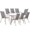 Obdélníkový zahradní stůl s rozměry 120x70 cm, vhodný pro 6 až 8 osob. Stabilní kovová konstrukce, 4 mm bezpečností sklo s reliéfem, středový otvor pro slunečník.