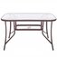 Obdélníkový zahradní stůl s rozměry 120x70 cm, vhodný pro 6 až 8 osob. Stabilní kovová konstrukce, 4 mm bezpečností sklo s reliéfem, středový otvor pro slunečník.