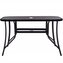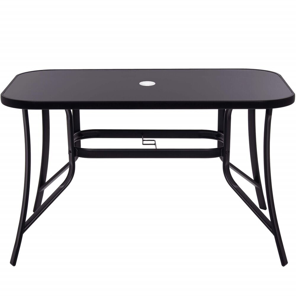 Tento obdélníkový zahradní stůl o rozměrech 120x70 cm nabízí dostatek místa pro 6 až 8 osob, což z něj činí ideální centrum zahradních setkání, grilovaček nebo odpočinku na čerstvém vzduchu. Stůl je vyroben se stabilní kovovou konstrukcí, která zajišťuje pevnost a dlouhou životnost, zatímco deska z 4 mm bezpečnostního tmavého skla dodává moderní vzhled a snadnou údržbu. Navíc je stolová deska vybavena středovým otvorem pro slunečník, díky čemuž můžete pohodlně zastínit celý stůl a užívat si příjemného stínu i v horkých dnech.
