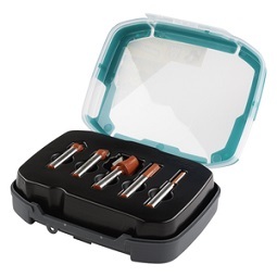 Vhodný pro materiálPlně vhodný tvrdé dřevo, dřevotřísková deska, konstrukční deska, dřevotřísková deska s plastovým povrchem Vlastnostik vytvoření drážkových profilů univerzální využití jak k ručnímu frézování, tak stacionárnímu použití díky prodlouženému dříku Technické údajeMateriál HM - osazený Průměr stopky 8 mmDélka stopky 40 mmRychlost otáčení max. 22 000 ot./minRozsah dodávky1 drážkovací fréza, HM, O 6 x 20 mm 1 drážkovací fréza, HM, O 10 x 20 mm 1 drážkovací fréza, HM, O 20 x 20 mm 1 drážkovací V fréza, HM, O 12, 5 x 10,5 mm, 45° 1 zaoblená fréza, HM, O 12, 5 x 9,5 mm, r 6,25 mm Díly v sadě 5-dílná Baleníplastový výklopný box 2K