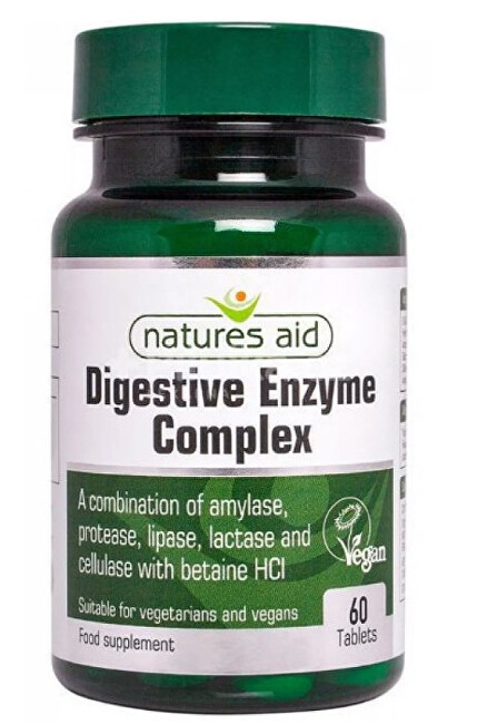 Trávení je klíčovou součástí zdraví a celkové pohody. Natures Aid Trávící enzymy Complex s betainem HCl obsahují kombinaci důležitých enzymů, jako je amyláza, proteáza, lipáza, laktáza a celuláza, společně s betainem hydrochloridem, které napomáhají štěpení sacharidů, bílkovin, tuků i vlákniny. Navíc pomáhají speciálně uživatelům, kteří mají problémy s trávením laktózy díky přítomnosti enzymu laktázy.