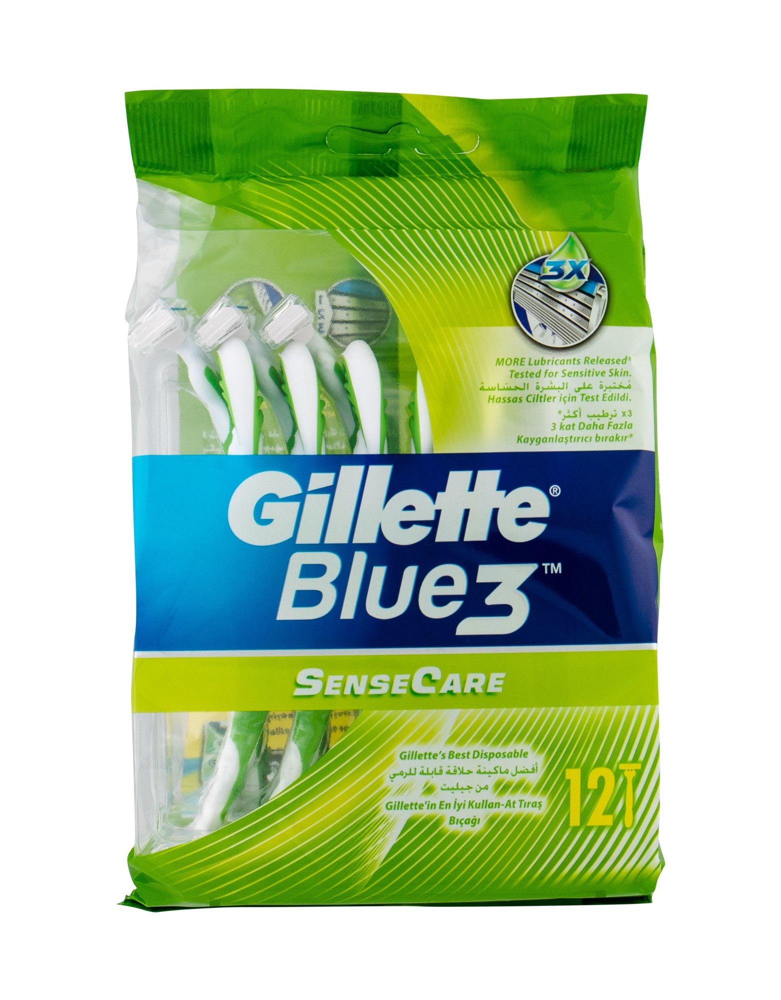 Jednorázová pohotová holítka **Gillette Blue3 SenseCare**. Pohotová holítka Gillette Blue3 mají 3 automaticky se přizpůsobující břity a zvlhčující pásek s vyšším obsahem hydratačních složek pro Vaše precizní holení.