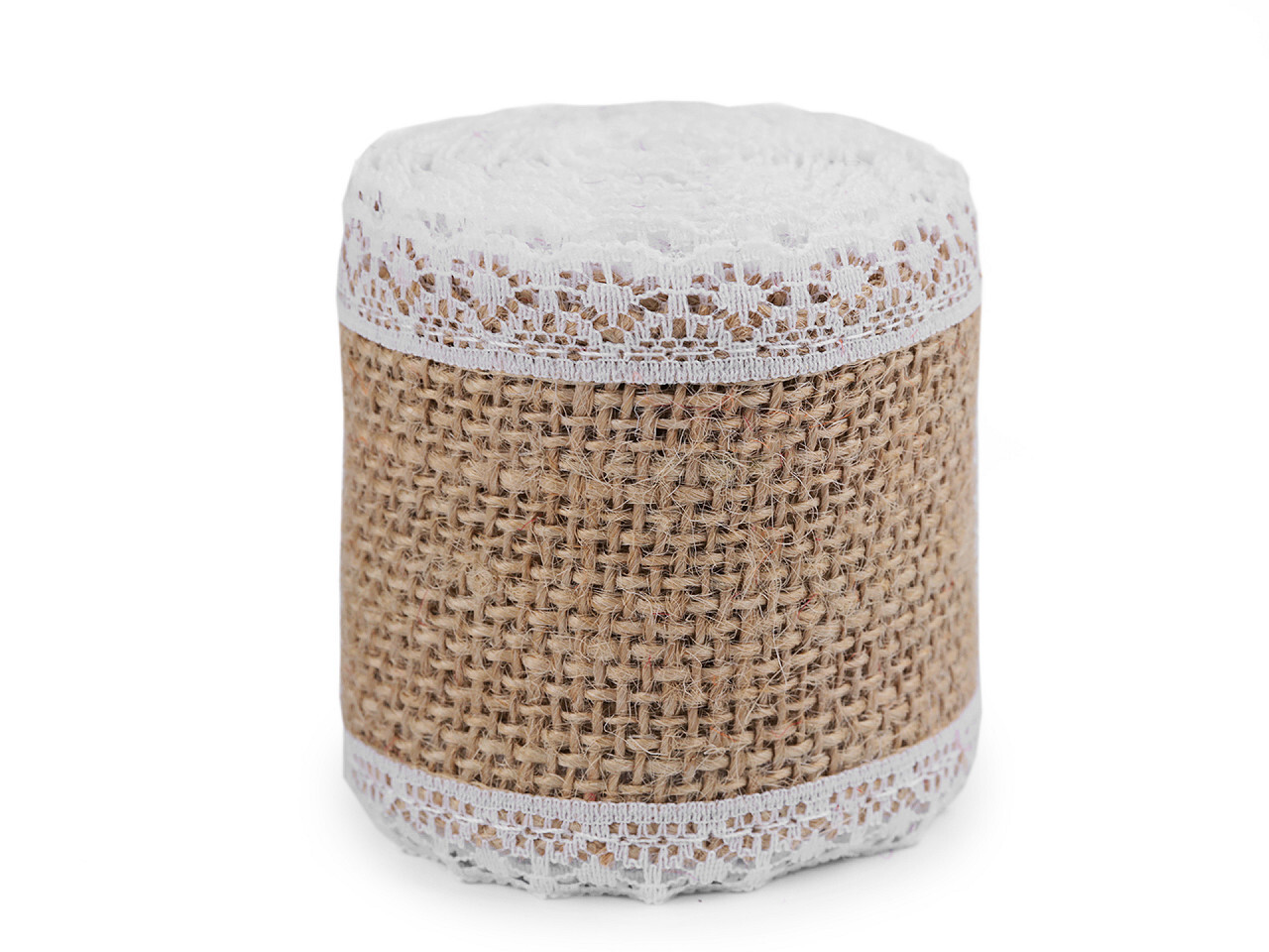 Jutová stuha s krajkou šíře 50 mm, 60 mm - 20 ks - 8 (60 mm) režná přírodní