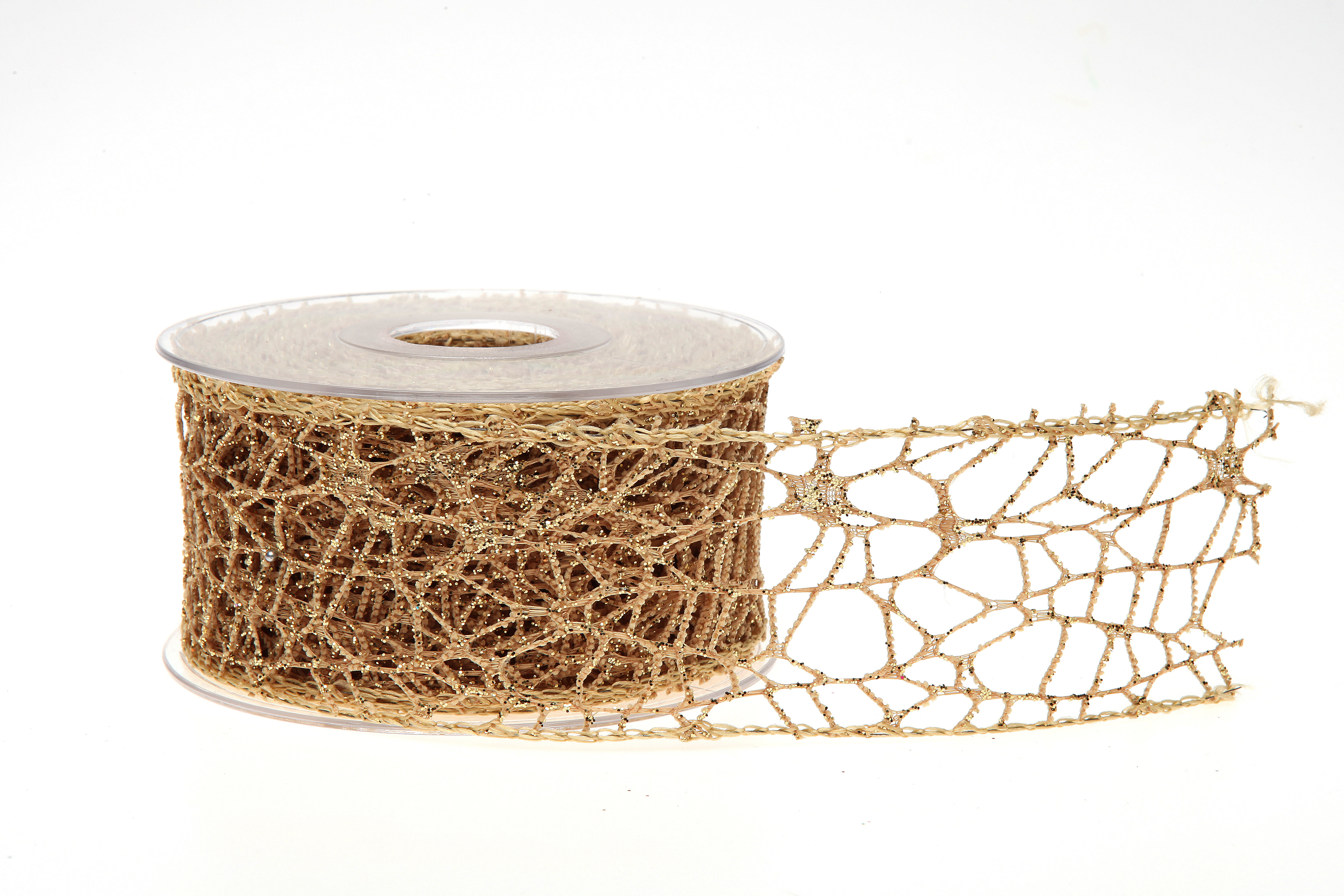 Vánoční stuha zlatá big spider glitter s nádhernou texturou hrubšího charakteru a třpytem. Vhodné kombinovat s big spiderem v rolích a přírodní jutou. Nádherně vypadá na adventních věncích, ve vánočních kyticích i jako vánoční dekorace bytů a stolů.