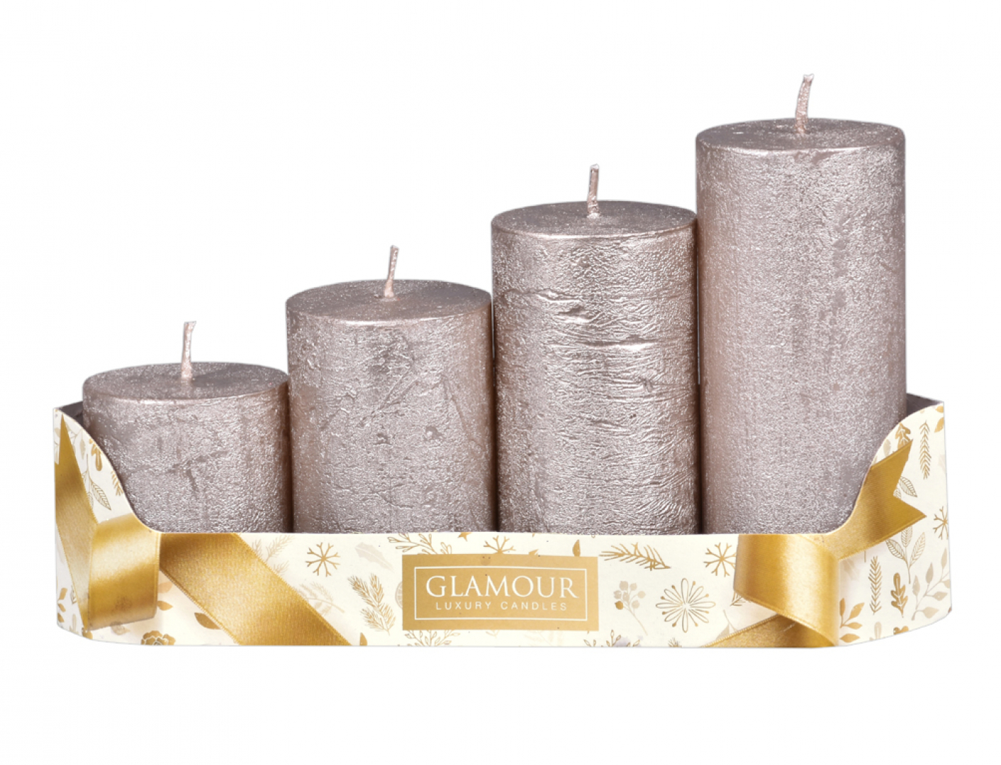 Sada adventních, metalických svíček v rustikálním designu. Svíčky mají válcovitý tvar s plochou hlavou a jsou stupňovité. Kombinace zajímavého barevného odstínu a rustikálního vzhledu vytáhne jakýkoliv adventní věnec o úroveň výš. Rozměry: průměr 5 cm, výška 6/ 8/ 10/ 12 cm. Velikost balení: 4...