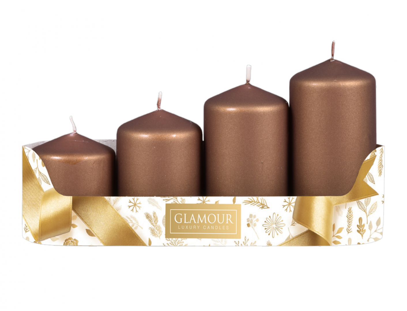 Sada adventních, stupňovitých svíček. Hladké svíčky mají tvar válce se špičatou hlavou a jsou v atraktivní matné metalické úpravě. Bude pasovat ke každému stylu adventního věnce. Rozměry: průměr 5 cm, výška 6/7,5/9/10,5 cm. Doba hoření: 22 hodin. Materiál: parafín. Sada obsahuje 4 ks svíček....