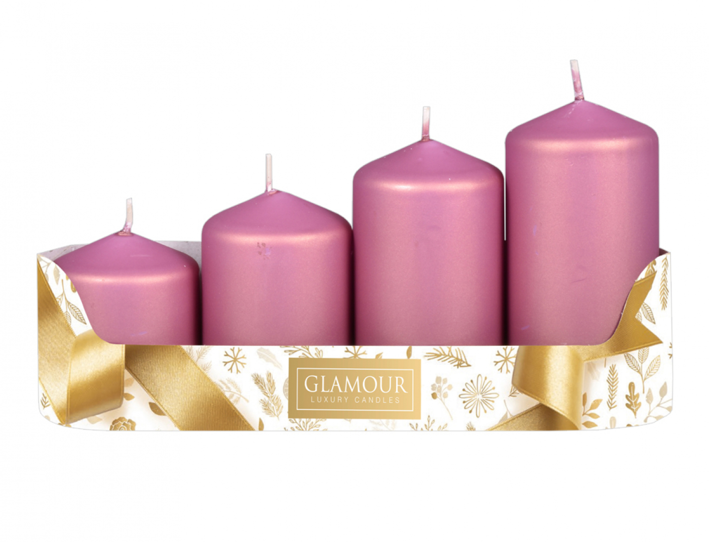 Sada adventních, stupňovitých svíček. Hladké svíčky mají tvar válce se špičatou hlavou a jsou v atraktivní matné metalické úpravě. Bude pasovat ke každému stylu adventního věnce. Rozměry: průměr 5 cm, výška 6/7,5/9/10,5 cm. Doba hoření: 22 hodin. Materiál: parafín. Sada obsahuje 4 ks svíček....