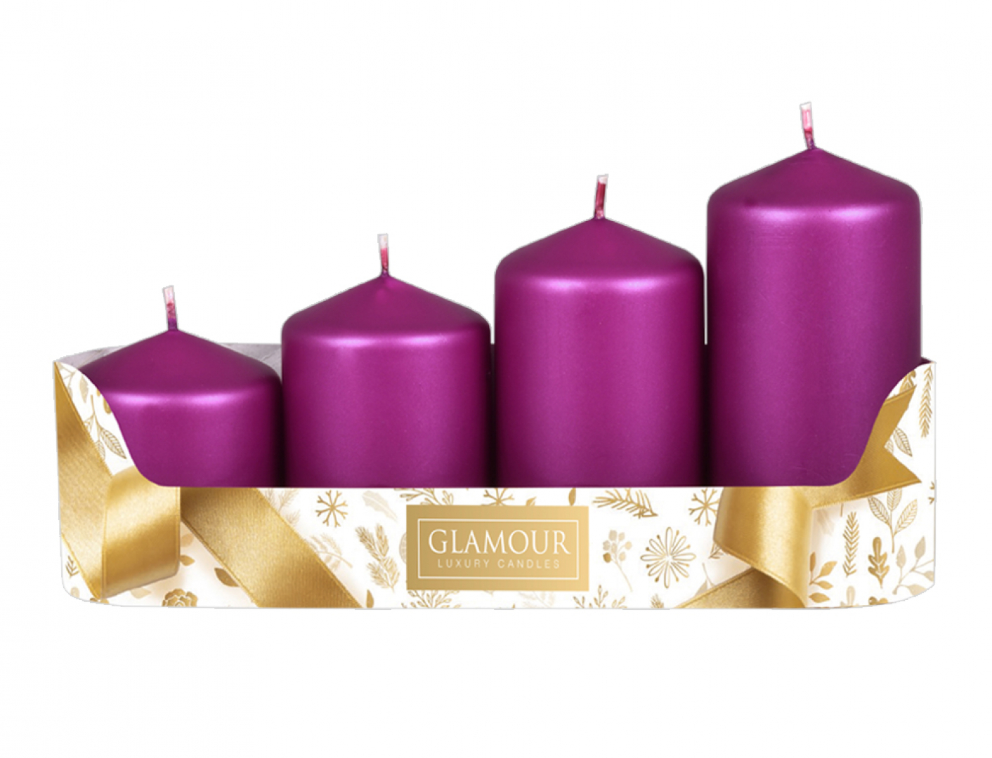 Sada adventních, stupňovitých svíček. Hladké svíčky mají tvar válce se špičatou hlavou a jsou v atraktivní matné metalické úpravě. Bude pasovat ke každému stylu adventního věnce. Rozměry: průměr 5 cm, výška 6/7,5/9/10,5 cm. Doba hoření: 22 hodin. Materiál: parafín. Sada obsahuje 4 ks svíček....