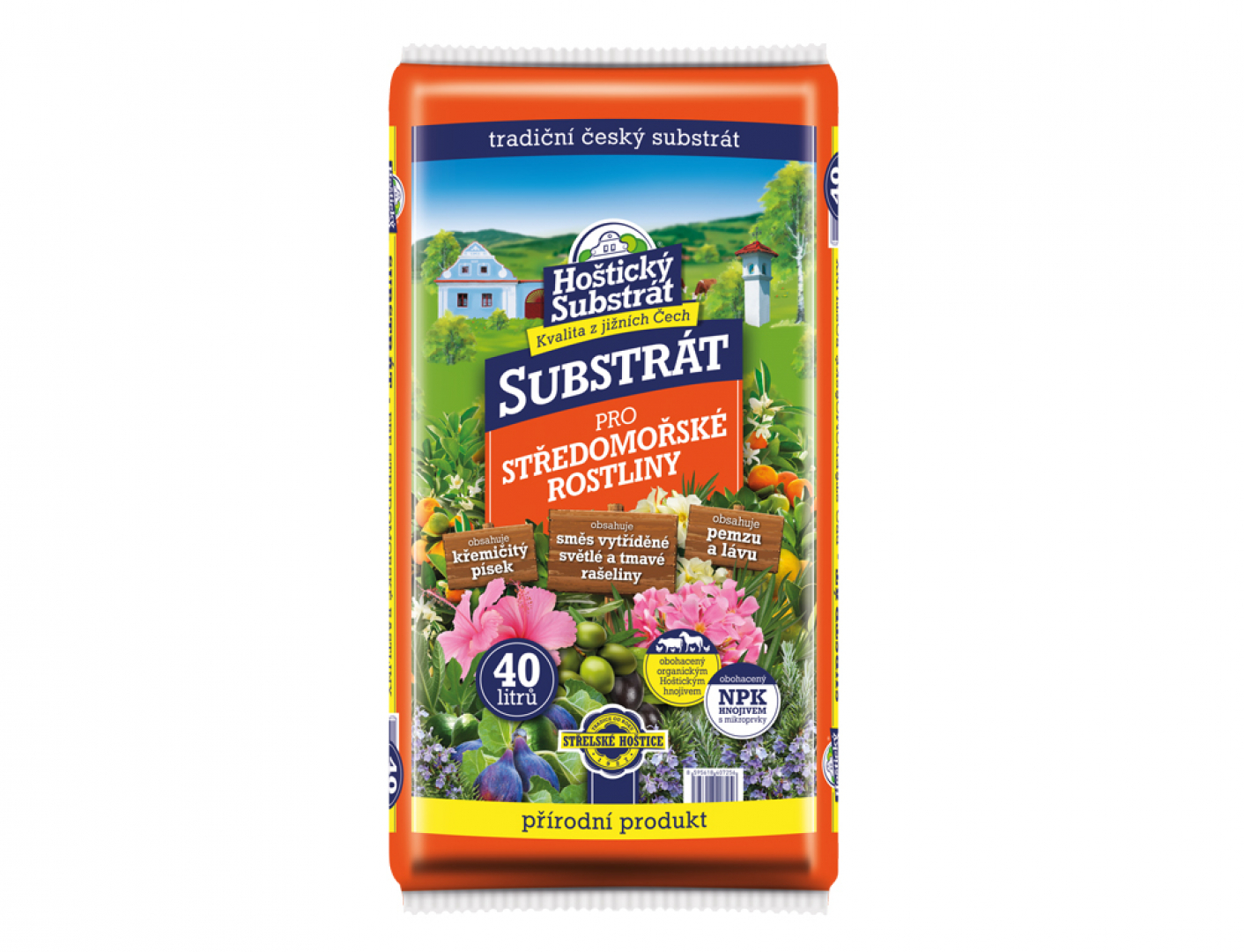 Substrát pro středomořské rostliny je vyroben ze směsi světlé a tmavé rašeliny, vhodné zeminy, prosetého jemně tříděného křemičitého písku, lávy a pemzy. K základnímu vyhnojení substrátu je použito kromě minerálního vícesložkového hnojiva s mikroprvky i organické hnojivo v podobě mikrogranulátu. Půdní reakce je upravena jemně mletým dolomitickým vápencem. Substrát je vzdušný a má dobrou propustnost pro vodu. Má optimální schopnost poutat vodu. Vhodný pro pěstování v nádobách i volné půdě. Po 4-6 týdnech dojde k vyčerpání zásob hnojiva v substrátu, proto je vhodné začít pravidelně přihnojovat. Velikost balení: 40 litrů.