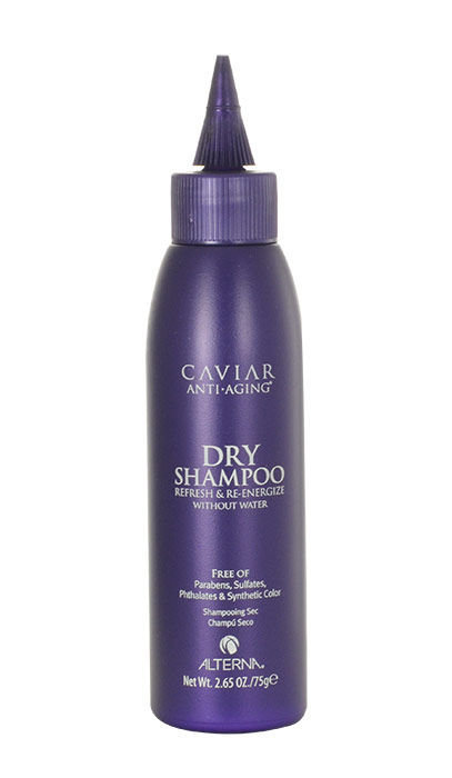 Suchý šampon **Alterna Caviar Dry Shampoo**. Suchý šampon Alterna Caviar Dry Shampoo okamžitě osvěžuje, čistí vlasy a absorbuje přebytečný maz. Dodává vlasům objem a příjemnou vůni. **Použití**: Aplikujte malé množství prášku do dlaně a rozetřete mezi prsty. Pote vmasírujte na pokožku hlavy, vykartáčujte přebytečný prášek.