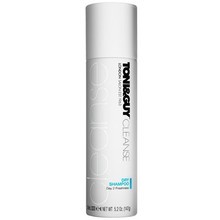 Suchý šampón **Toni&Guy Cleanse Dry Shampoo**. Suchý šampón Toni&Guy Cleanse Dry Shampoo dodá vlasům svěžest bez mytí vodou. Okamžitě absorbuje mastnotu a šetrně čistí vlasy. Zanechává vlasy svěží a plné objemu. **Vlastnosti**: · dodává vlasům objem · absorbuje přebytečný maz **Použití**: Aplikujte ke kořínkům a pročesejte.