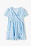 Sladké a stylové dívčí letní šaty jsou navrženy z měkké a lehké látky s celoplošným potiskem, mají krátké rukávy a přední zavinovací otvor, který se zavazuje na boku v pase. Sukně šatů je zakončena pěkným nařaseným lemem.