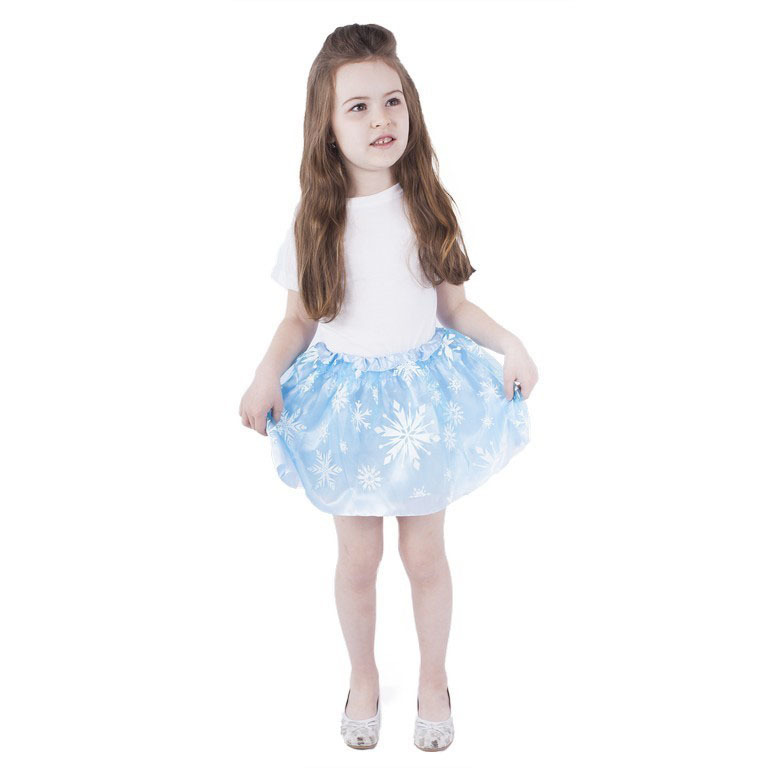 Roztomilá sukně TUTU pro všechny zimní princezny! Sukýnka je určena pro holčičky ve věkovém rozmezí 3-10 let (104-150 cm). Nadýchaná suknička je zdobena třpytivými sněhovými vločkami a saténovým lemováním v pase.