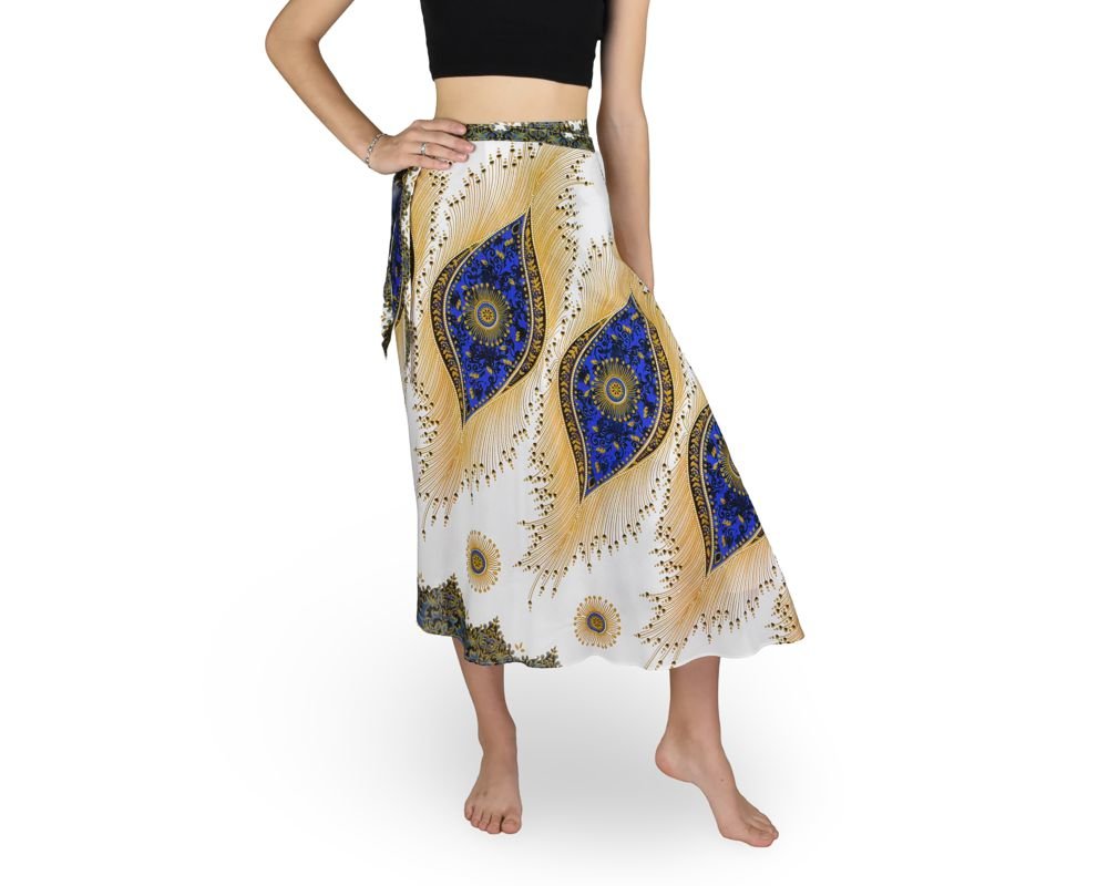 Zavinovací sukně NORIO, bílá, modrá oka