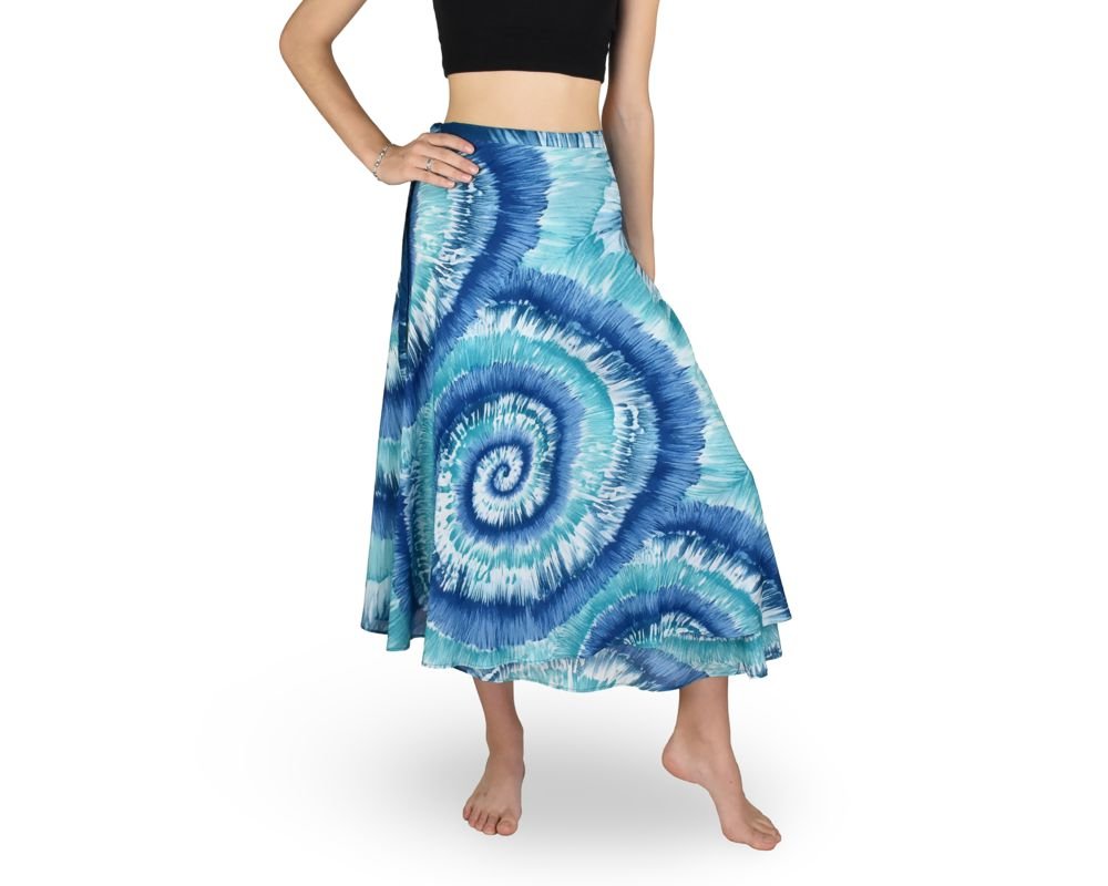 Pohodlná letní zavinovací sukně se zavazováním v pase.