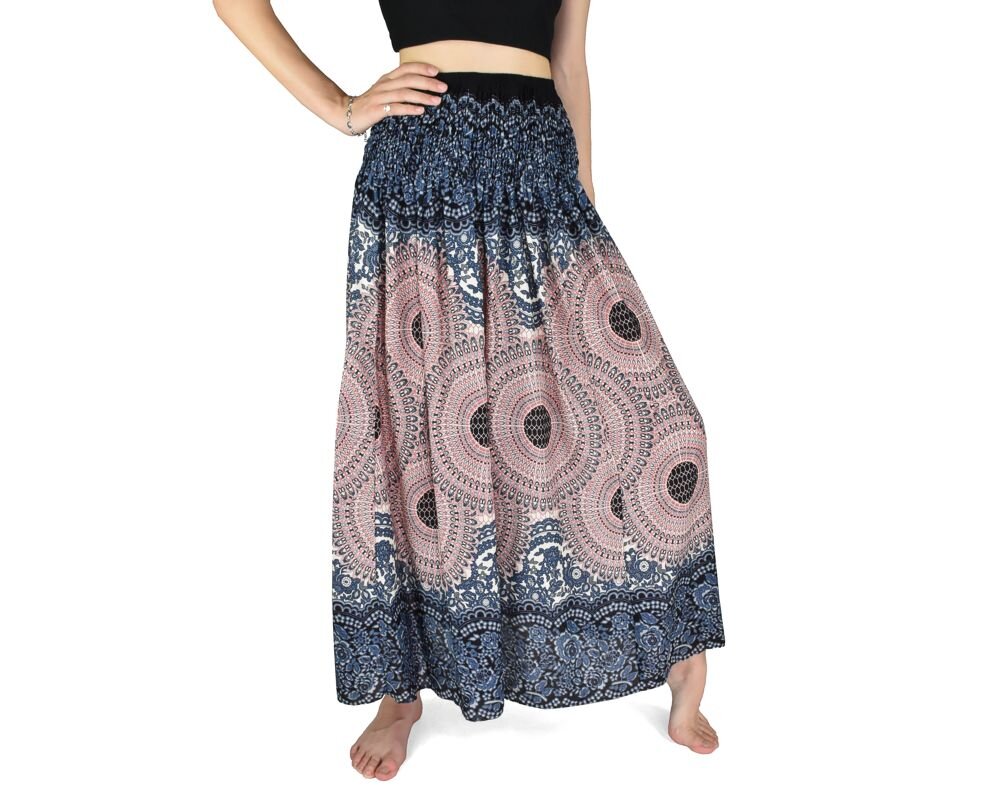 Dlouhá sukně KAMON, mandaly, modročerná Varianta A (pruh nahoře)