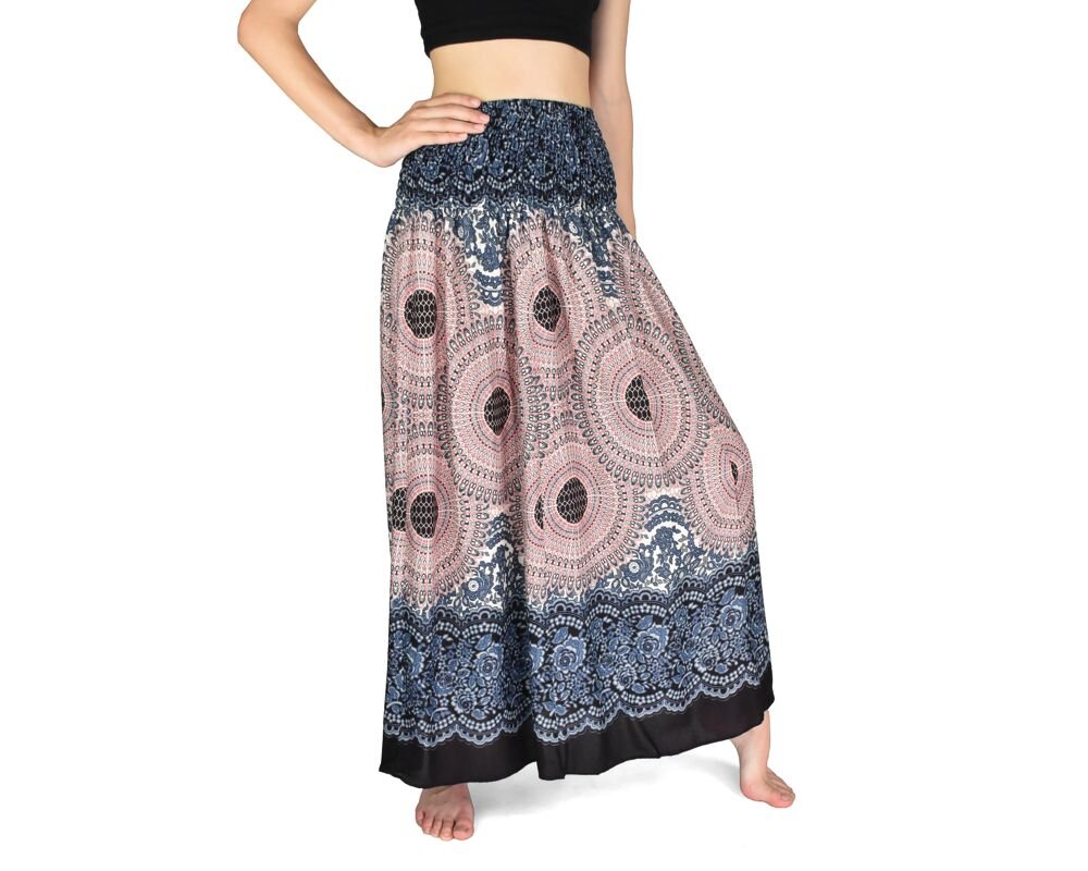 Dlouhá sukně KAMON, mandaly, modročerná Varianta B (pruh dole)