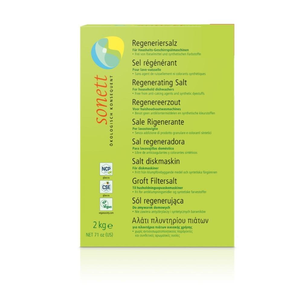 Díky pravidelnému používání regenerační soli Sonett zajistíte dlouhodobý bezproblémový chod myčky a perfektní výsledky mytí, kdy vaše nádobí bude vždy krásně čisté a bez stop vodního kamene. Produkt pochází z Německa a je balen v praktickém sáčku z PE, který se snadno skladuje.