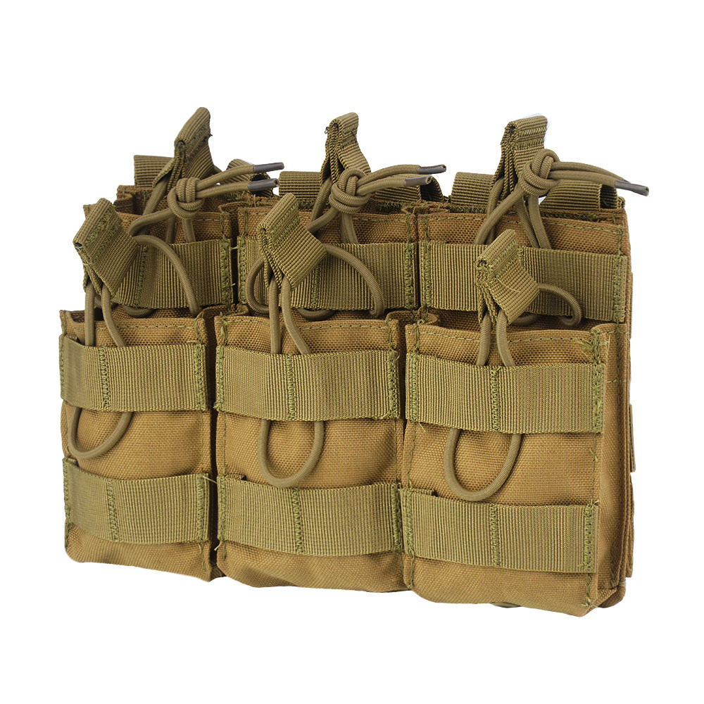 Potrójna ładownica na magazynki AR15. Wykonana z poliestru o gęstości 1000D. Kieszenie otwarte typu CQB, zabezpieczone elastycznym, regulowanym trokiem ze specjalnym uchwytem, umożliwiający obsługę w rękawicach. Mocowana do panelu sześcioma pionowym paskami MOLLE. Na przedzie poziome pasy montażowe dla dodatkowych elementów.